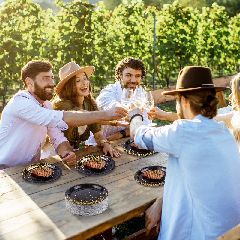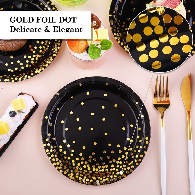 - Applicable to multiple occasions: with exquisite workmanship and elegant appearance, our black and gold paper plates are great for anniversaries, graduations, weddings, showers, birthday parties, BBQs and other occasions, bringing an unforgettable experience to you and your guests; what's more, you can simply throw these out after use, saving you time and energy, convenient and practical