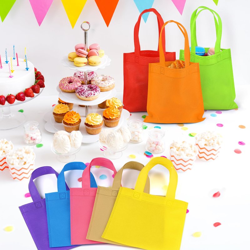 - Multiple use: you can use these non woven party bags as give-away bags and goody bags for a party, or use them for birthday party favors, put little items inside of them, such as snacks, little toys, a bandana, sweets and so on, work well for Easter egg hunt, raffle prizes