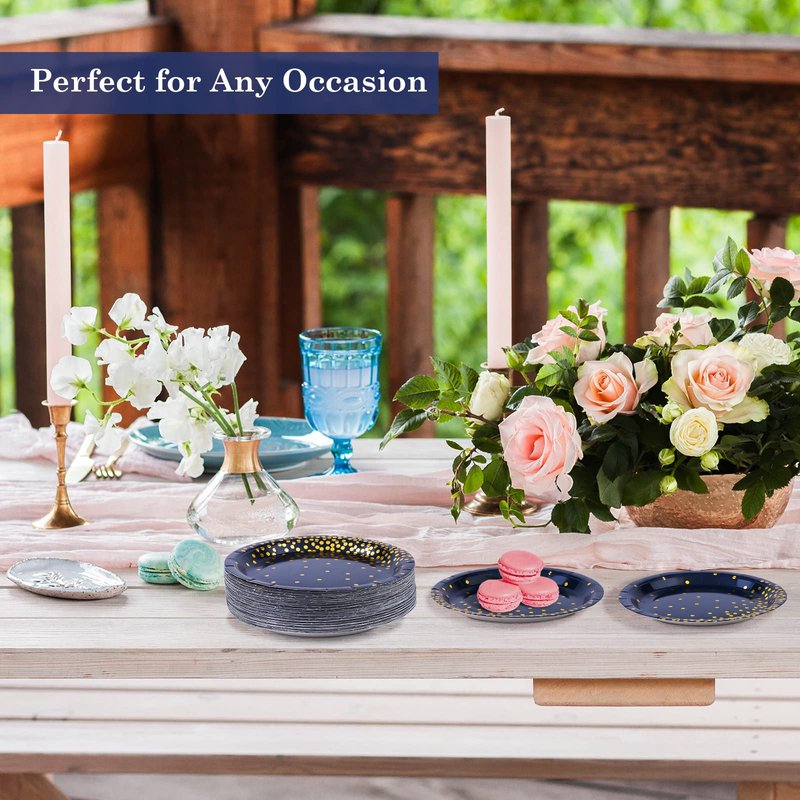 - Applicable to multiple occasions: our navy paper plates are great for anniversaries, graduations, weddings, showers, birthday parties, singles parties, BBQ and other occasions, you can simply throw these out after use, saving you time and energy, convenient and practical
