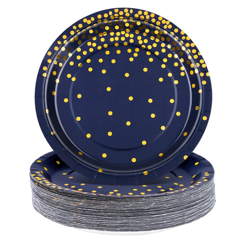 - Fancy design: with the classic blue background, the circular paper plates are designed with gold dots, elegant and delicate, suitable for daily use and party use; your guests will be surprised and enjoy their meal in the sleek and happy atmosphere