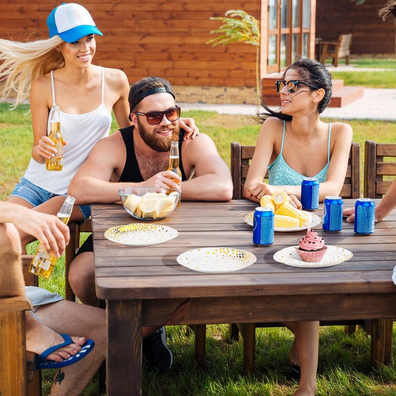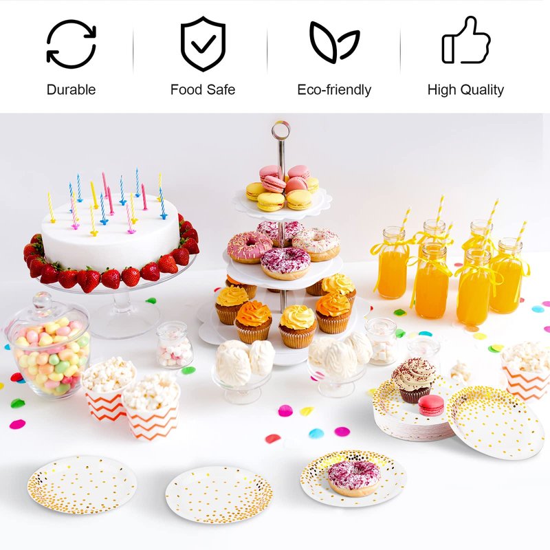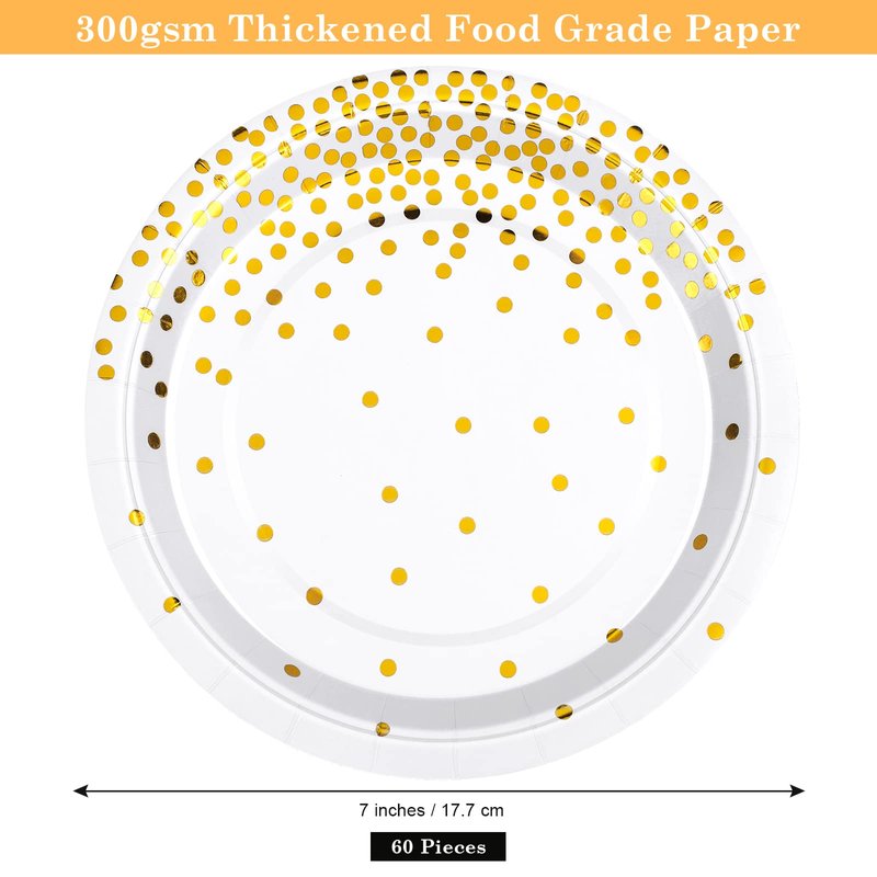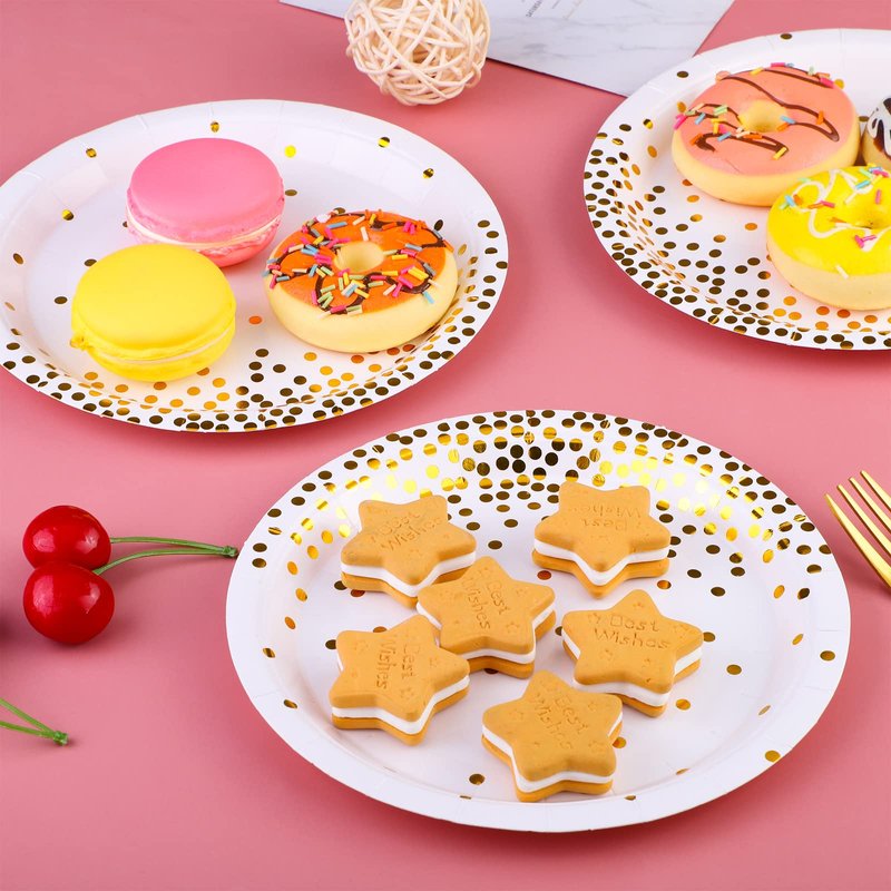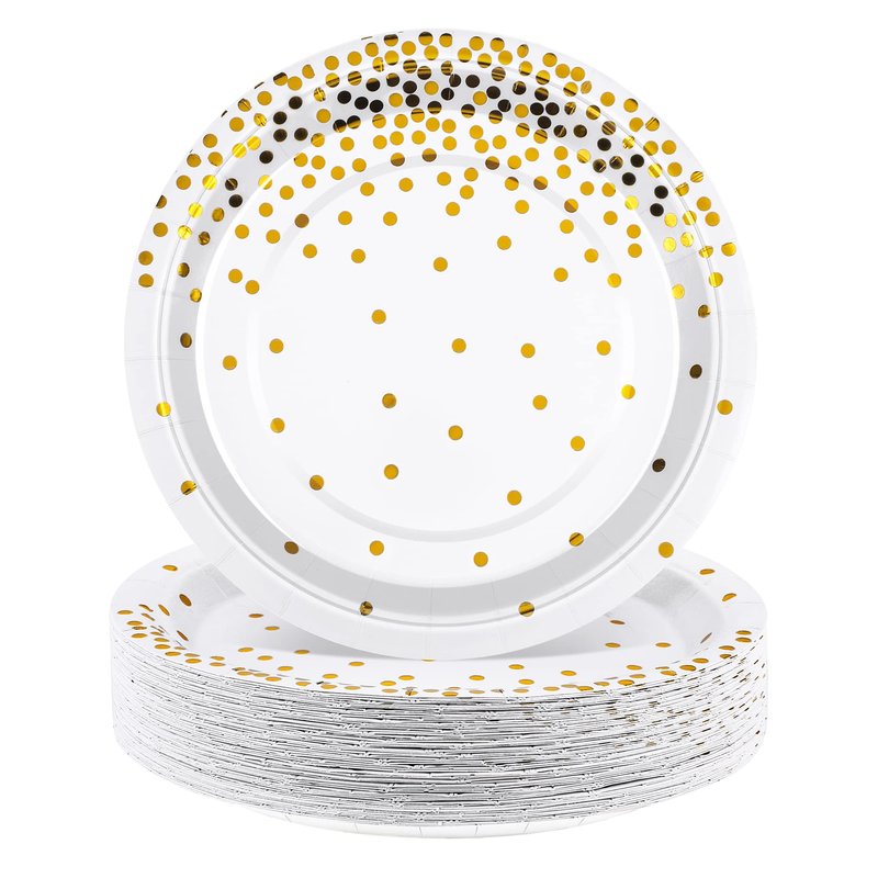 - Fancy design: with the classic white background, the circular paper plates are designed with gold dots, elegant and delicate, suitable for daily use and party use; your guests will be surprised and enjoy their meal in the elegant and happy atmosphere