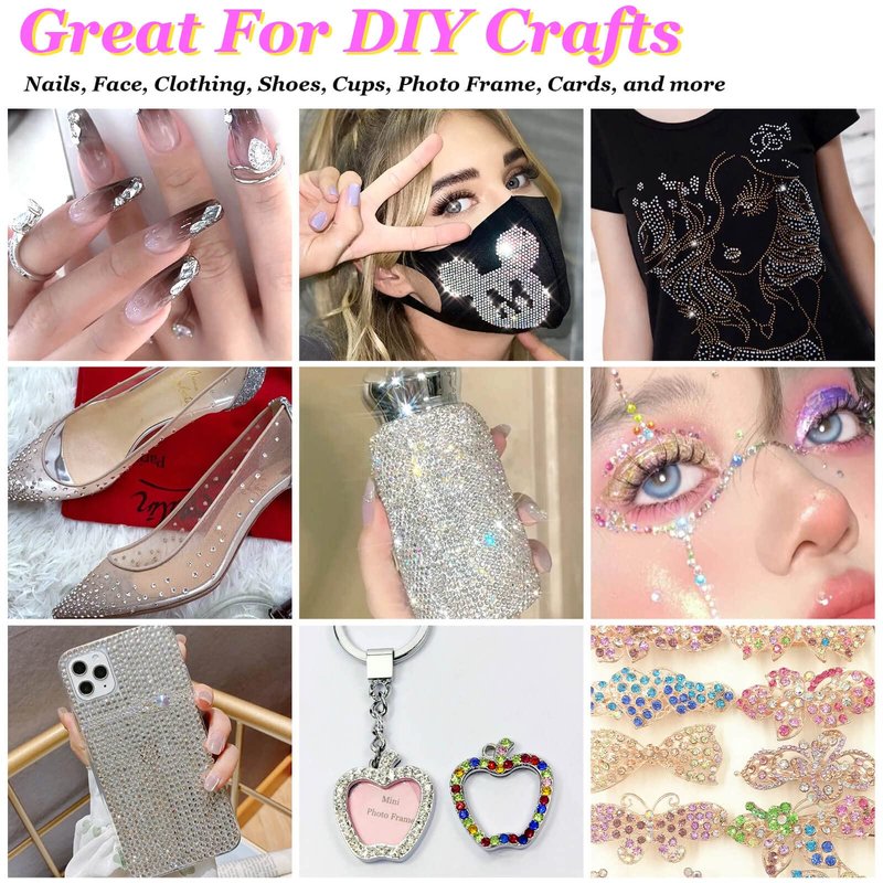 - πWIDE APPLICATION: These bling rhinestones are ideal for nail art decorations, you can also add them to make-up, phone cases, purses, card crafting, greeting cards, shoes, bags, garments, wedding dresses, tumblers, guitars, tablets, car plates, table scatter, hair clippers, costume, etc. Anything you want to take on a whole new look. Embellishing your DIY crafts, so shiny & gorgeous, providing different visual enjoyment