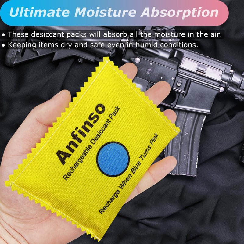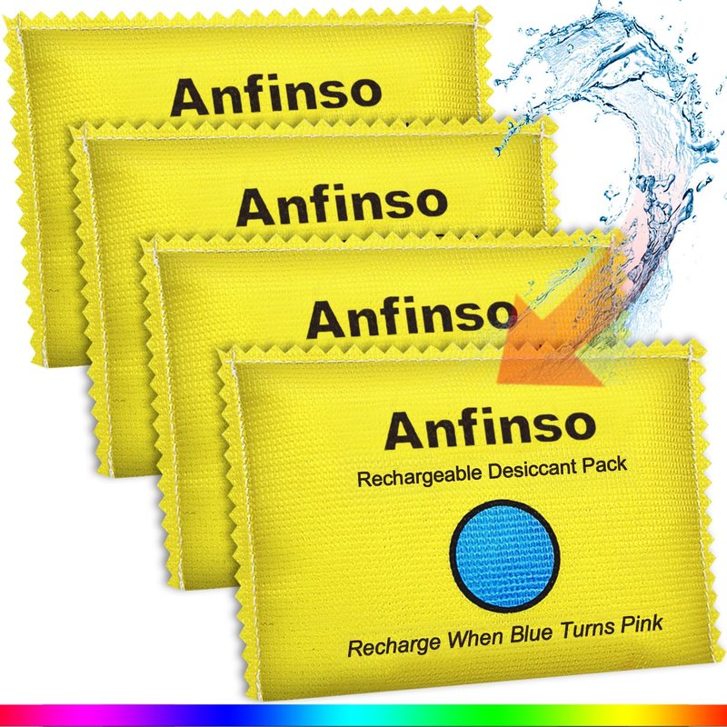 Anfinso 4 Pack X 100 Gram Rechargeable Desiccant Silica Gel Packets, Moisture Absorbers Desiccant Dehumidifier Bags for Gun Safes, Closet, Cars, Totes, Storage Bins, Reusable