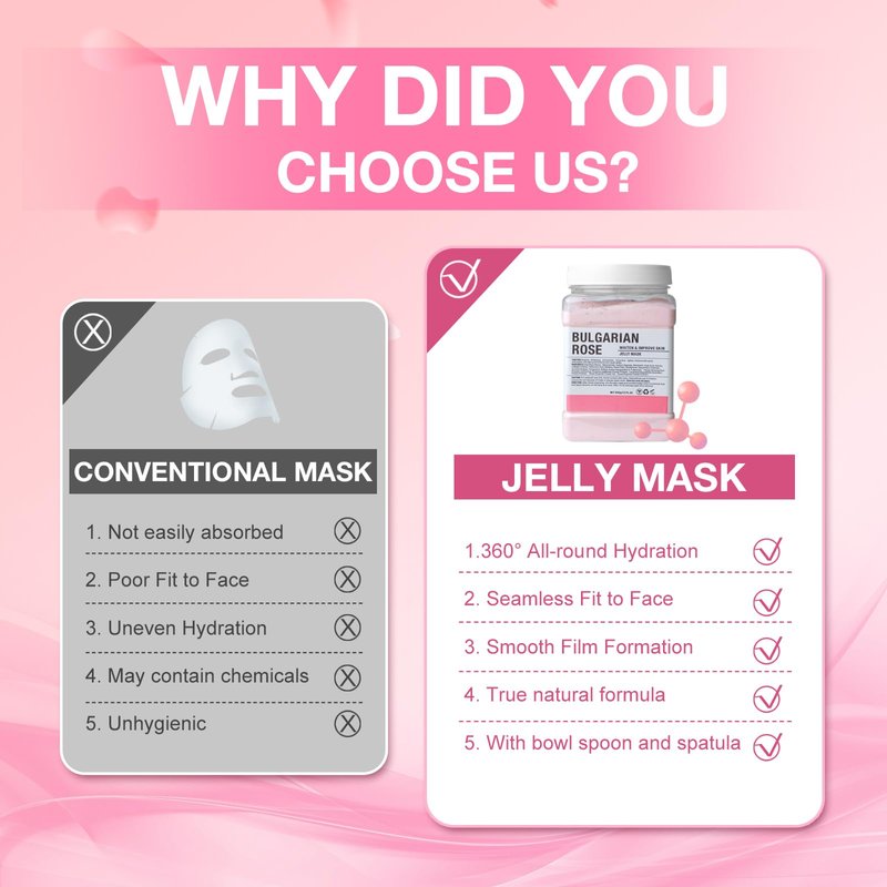 - 【IMPROVE YOUR SKIN QUALITY】 The jelly mask for facials helps to exfoliate and deeply cleanse the skin, improve the metabolism of skin cells and maintain the integrity of the stratum corneum moisture. The essence of rose of this gel face mask can play the role of skin toning and firming. It can makes the skin soft, and energetic. You can experience a comfortable and undisturbed professional SPA treatment at home, which is more cost-effective than beauty salons.