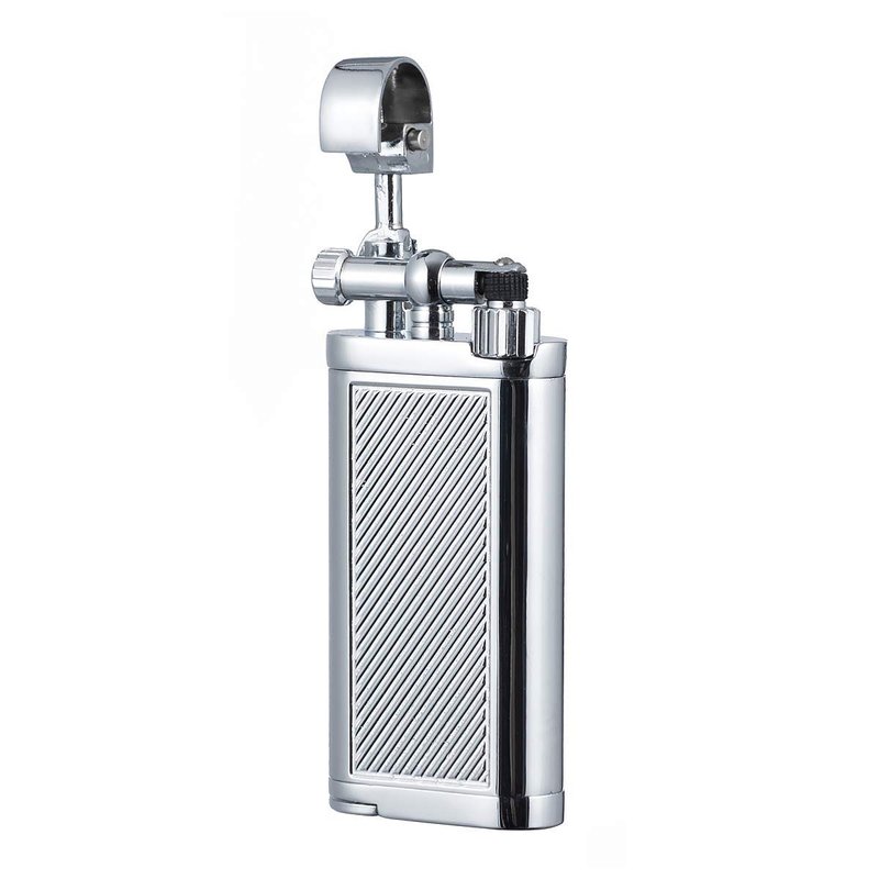 Angled Soft Flame Antique Style Lift Arm Butane Refillable Lighter with Tamper & Pick (Chrome)