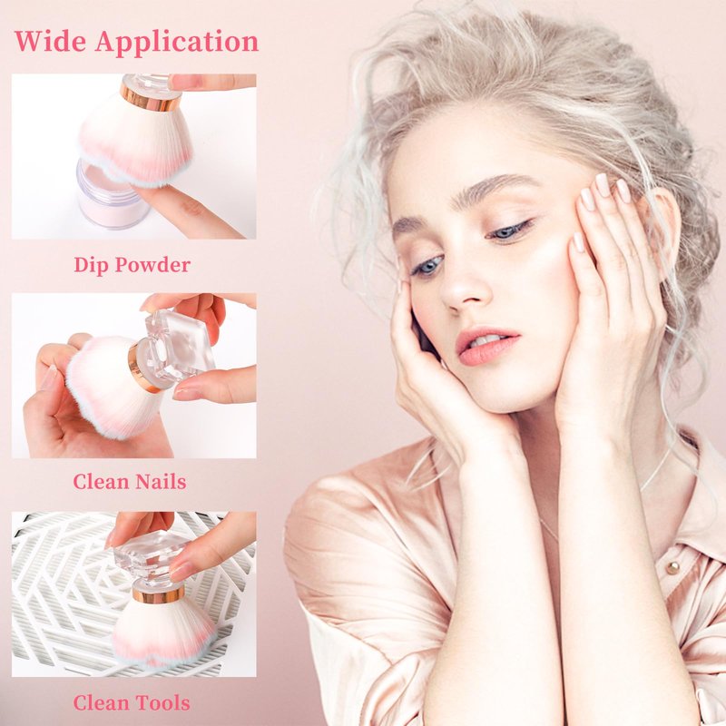 - Multiple Usage: With the nail dust cleaning brush, you can not only brush excess nail dip powder off nails or dust collectors, but also dust off nail rubble and particles. The bristles effectively capture and remove nail dust and debris, ensuring a clean and tidy workspace. You can also regard it as a blush brush and loose powder brush