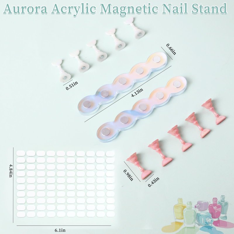 - 🌷【A Must-have Nail Tool】Made up of premium material, the nail stand with putty is ideal for nail salon, nail art school and home use. It's very suitable for professional nail artists, beginners and nail art lovers to display and practice. Tips;The protective film for the nail stand is underneath the magnet.The top layer of the magnet is aurora film (when the production sticking Aurora film need to use a scraper to smooth out the air in the aurora film, so there will be more or less a little scratches.