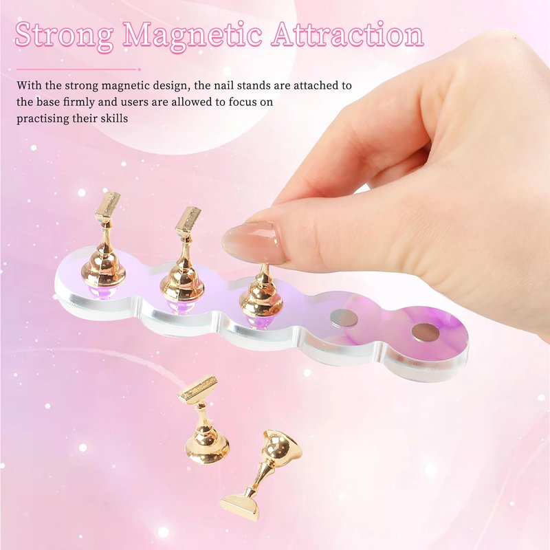 - 💗【Strong Magnetic Nail Stands】Every nail stand for press on has a built-in strong magnetic magnet design, so the nail display holder can stand upright on magnetic base stably and stay in place, easy to install and uninstall.magnets are very sturdy.