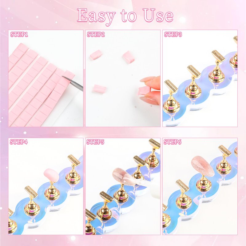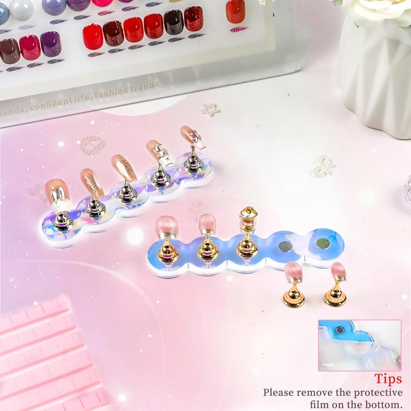 - 💜【Metal Nail Display Stand】Our nail tip practice stands are meticulously crafted using premium plastic, acrylic, and super magnetic magnets, sturdy enough for long time use, compact and lightweight, easy to carry, you can take it anywhere to design or display your nails.Our nail stand with putty has holographic rainbow and crystal clear looking. It will show the different aurora color on the different lights, and the aurora base can display a set of 10 nails.