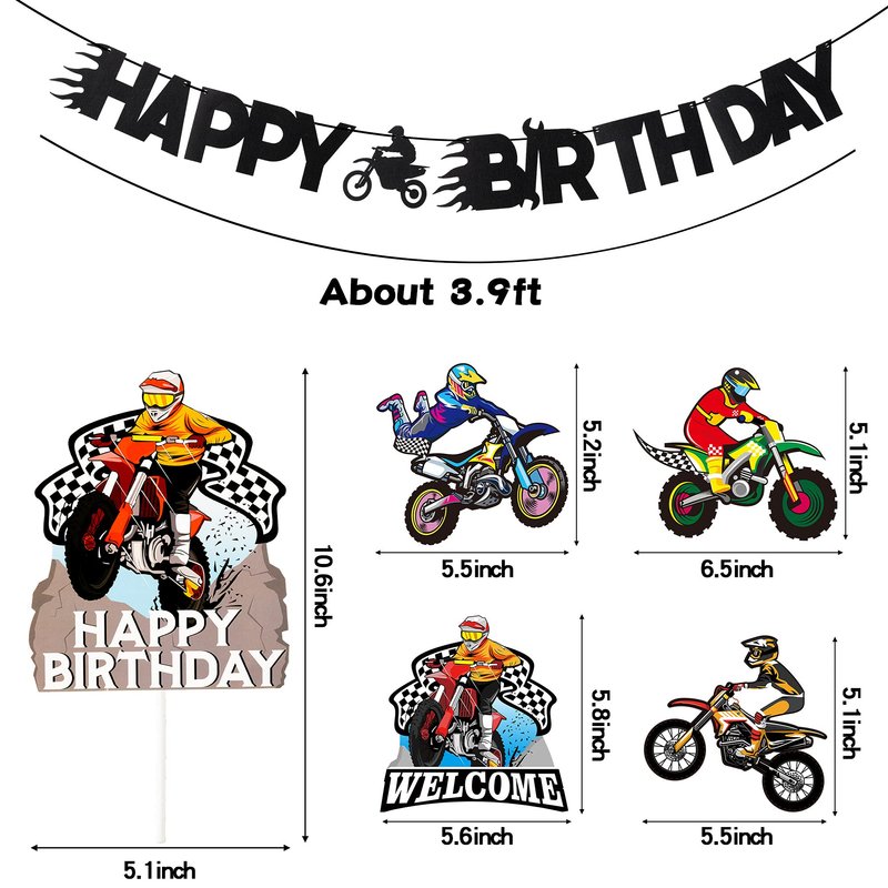 - What You Get: Motocross spiral*30,Happy birthday banner*1,dirt bike welcome party centerpiece*30,extreme motorcycle sports birthday caketopper*1