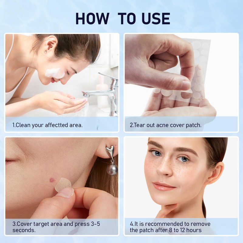 - How to Use: 1. Cleanse the area around the problem spot (Keep problem areas dry) 2. Choose the right size of pimple patch according to the size of the blemis (It's best when your acne is whiteheaded.) 3. When patch trun white, change another patch. Keep using it