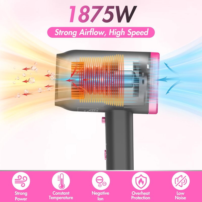 - 【1875 Watt Powerful Motor for Fast Drying】ANIEKIN hair dryer is equipped with a 1875W power and high rotating speed to output strong and smooth airflow effortlessly. Combined with the constant temperature, the blow dryer ensures fast drying and styling to provide efficient protection and optimal care for your hair.