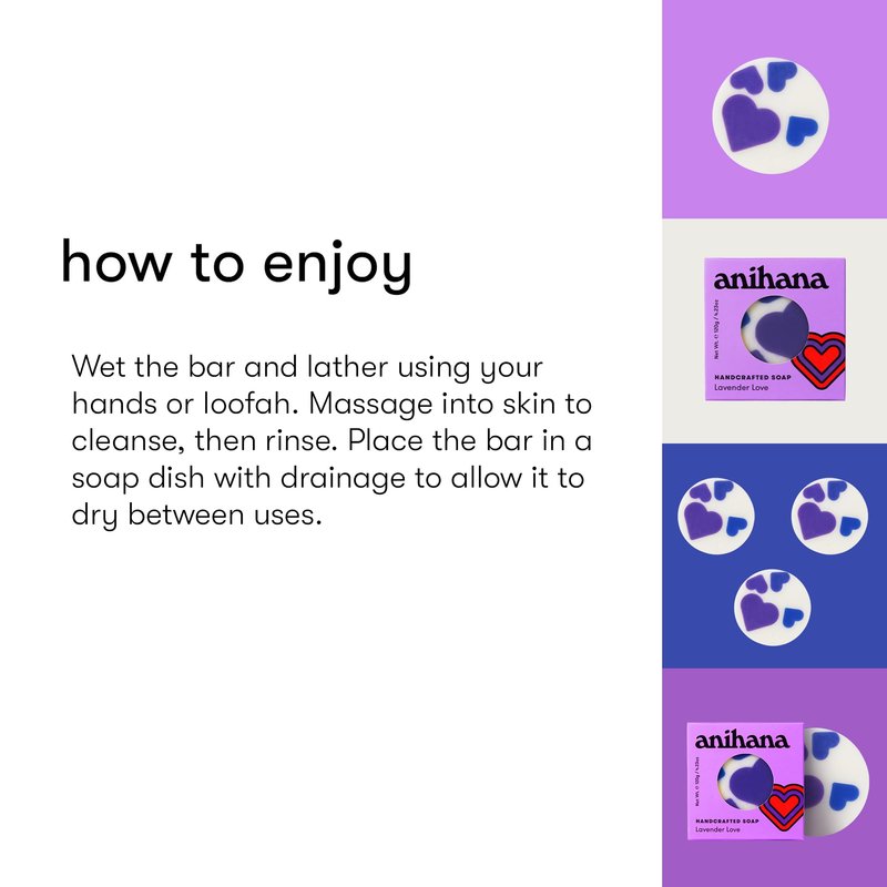 ANIHANA Handcrafted Natural Soap with Coconut Oil, Gentle Cleansing, Paraben Free, Refreshing Lavender Love Scent, 4.23 oz