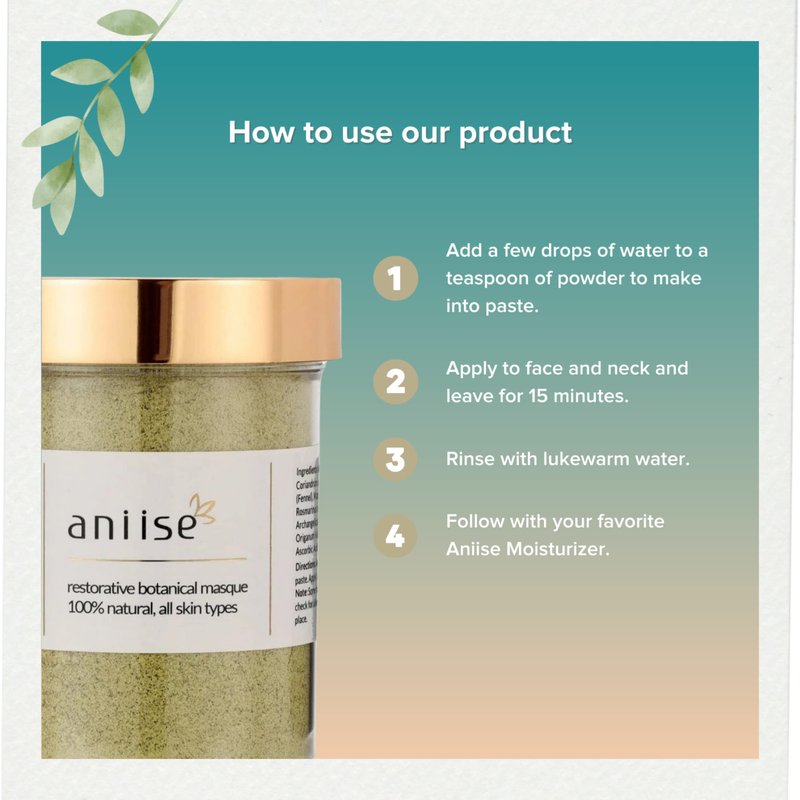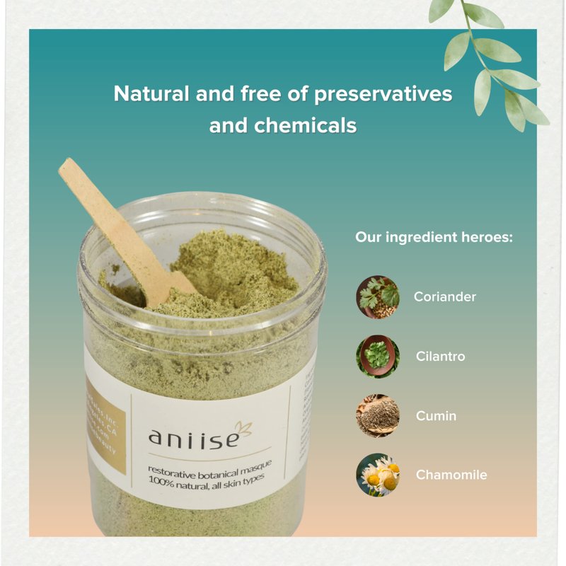 - ABOUT FACE MASK: Aniise restorative botanical face mask using actual herbs (and not their extracts) maintains the herb's natural and unrefined properties - just as nature meant. This 100% natural and botanical mask, free of preservatives and chemicals will return your skin to its naturally beautiful and healthy state.