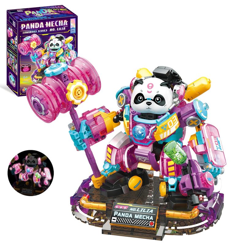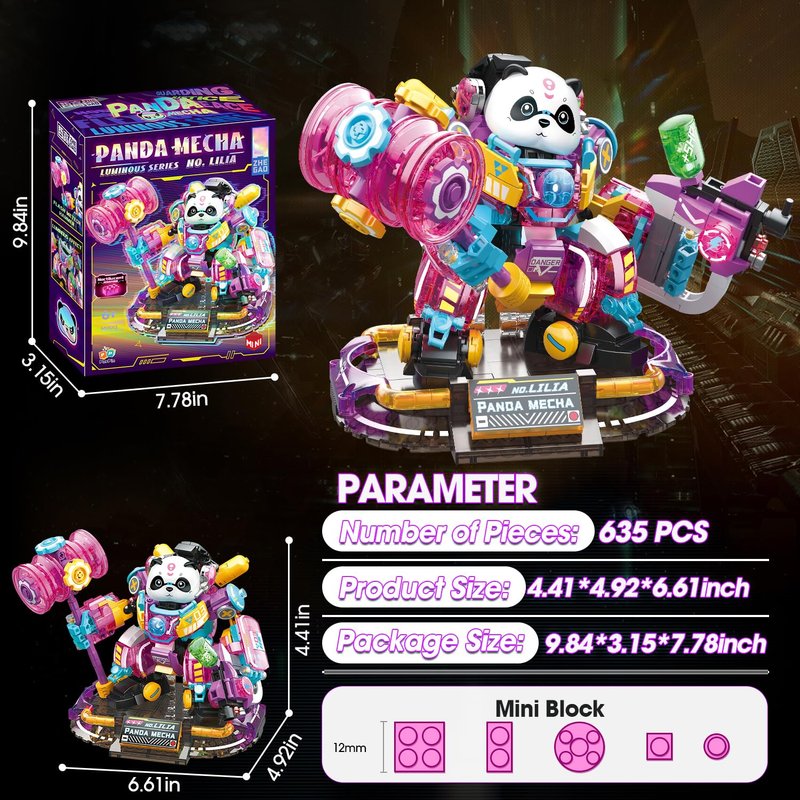 - 【Adorable Panda Building Set】- Dive into the world of adorable mecha pandas with this 635-piece mini building block set. Armed with a flashing meteor hammer and blaster, these brave pandas stand ready to defend the city's peace. NOTE: Please note that this set uses MINI building blocks and is not compatible with other size.