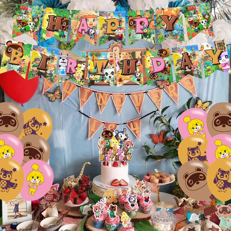 - 【WHAT'S IN THE PACKAGE】The birthday party decorations set includes : Animal Cross-ing themed happy birthday banner, cupcake toppers, cake topper,Animal Cross-ing themed latex balloons decorations. Perfect for kids' birthday.