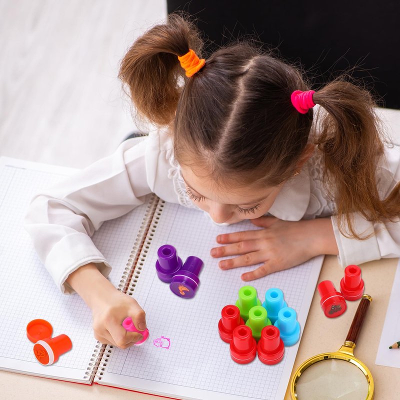 - Pocket stamps: Our colorful stamps are about 1.5 inches tall and 1 inch in diameter, small and portable, easy to carry, can be put in a pencil case, pocket or school bag; as a gift or school reward, kids will love these stamps!