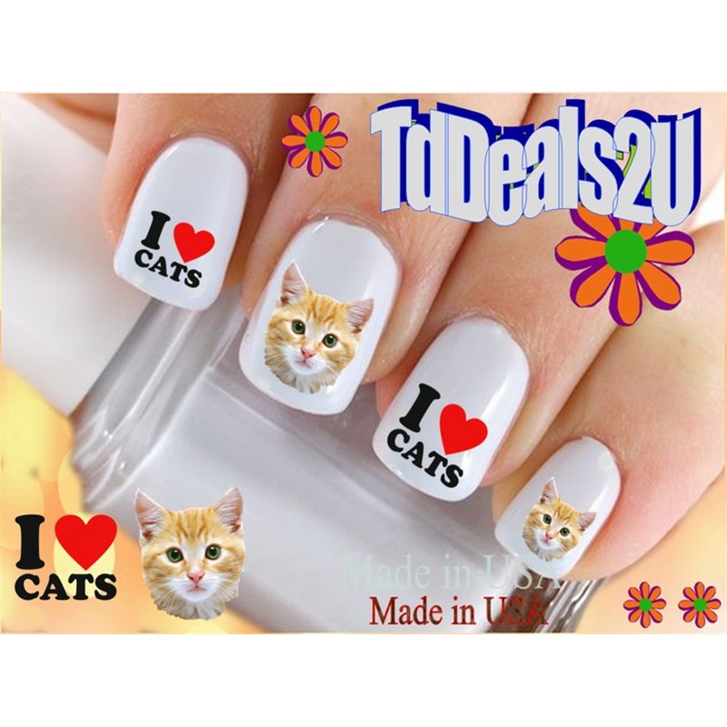 Animals - Cats - I Love Cats Tabby Cat Nail Decals - WaterSlide Nail Art Decals - Highest Quality! Made in USA