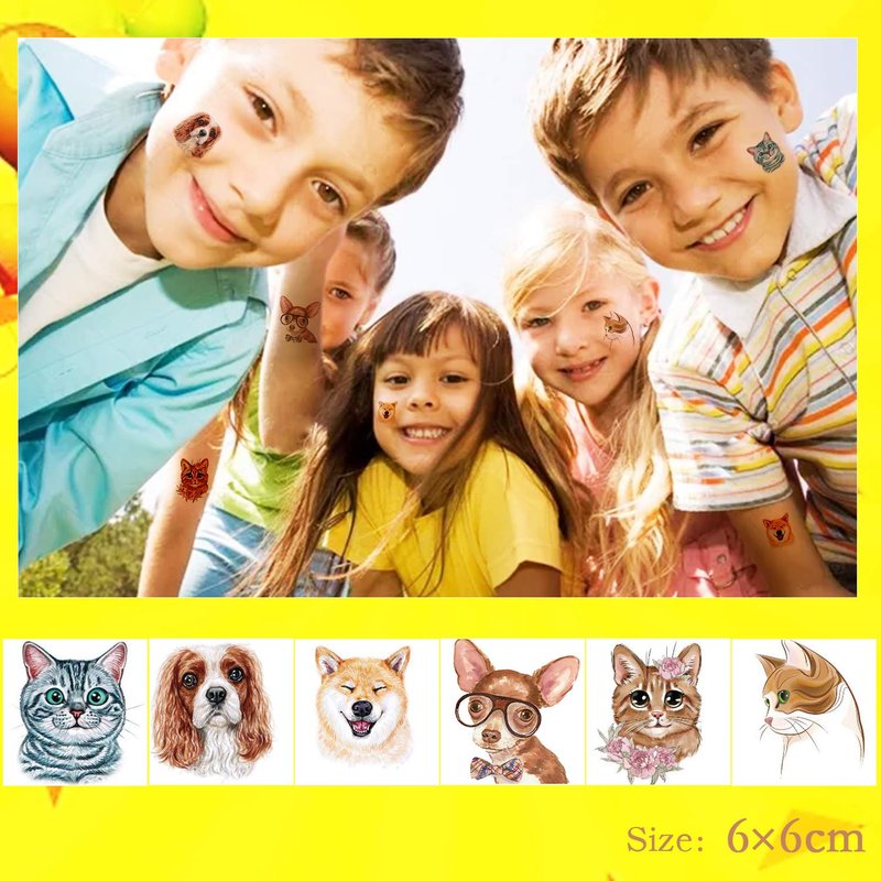 - 【36 SHEETS/LOT】 - 36 sheets animals theme temporary tattoos for kids, size 2.4*2.4 inch (6*6cm), used for arms, shoulders, back, legs and any other part of your body. Kids tattoos also can apply them to some smooth objects, for example, glass, cup, stationery, plastic, phone case, car etc.