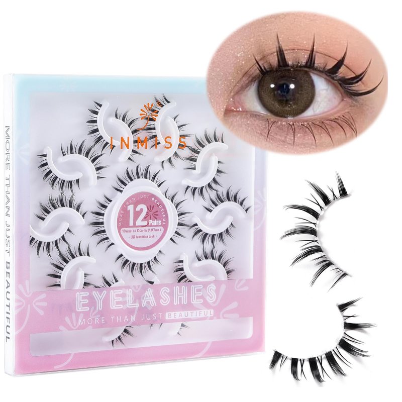 Anime Lashes Clear Band Spiky Lash Wispy Natural Look Japanese Asian Cosplay Manga Fake Eyelashes Individual Cluster 12 Pairs by INMISS