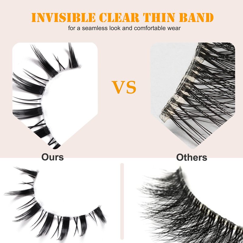 - 3. Clear Band Spiky Lash: Invisible slim clear band, the wide of 0.1cm clear lash band will let the natural false eyelashes blend to your own real eye lashes perfectly, naturl looking, 100% handmade Knotted, lightweight and soft.