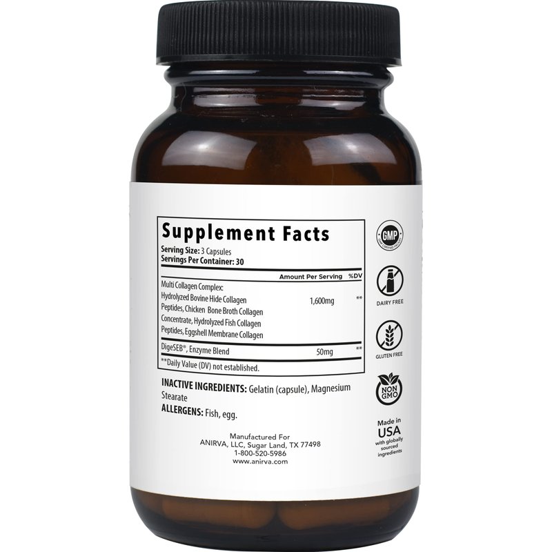 - ✅ Premium Quality: Our collagen pills for skin and hair are ethically sourced from grass-fed, pasture-raised sources, Non-GMO, free of hormones, gluten and dairy. Anirva’s Multi Collagen Complex Supplement provides you with a potent way to support your health, strength and beauty. Our collagen pills capsules are both for women and men, and are manufactured in the USA in a GMP certified facility.