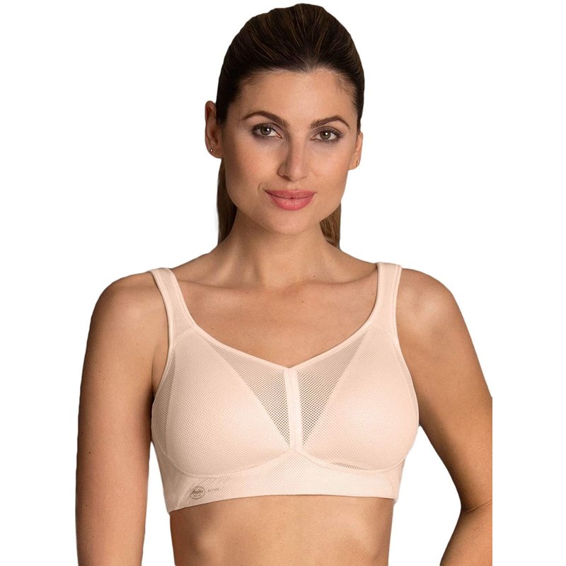 Keep cool in this breathable, wire-free sports bra, End strap slipping with adjustable, leotard back straps. 3 column, 3 row hook and eye back closure, Moisture-wicking microfiber and mesh. Built for high-impact activities such as zumba Brand: Anita, Style Number: 5544. Body: 50% Nylon, 35% Polyester, 15% Elastane.