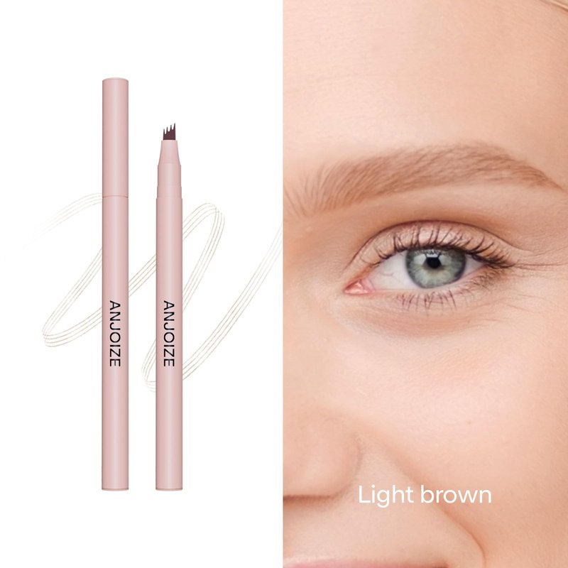 - UPGRADED WATERPROOF MICROBLADING EYEBROW PENCIL : Anjoize eyebrow pen has been upgraded with a tighter seal between the cap and the pen body to prevent the ink from drying quickly,our four-forks applicator ensures accuracy, giving you clear, defined brows with every stroke.Say goodbye to sparse eyebrows with this longwear natural brows eyebrow pen