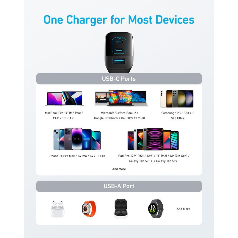 - High-Speed USB-C Charging: Loaded with 67W of power to charge phones, tablets, and laptops. Fast charge a MacBook Pro 13" (M1) from 0 to 50% in just 46 minutes.
