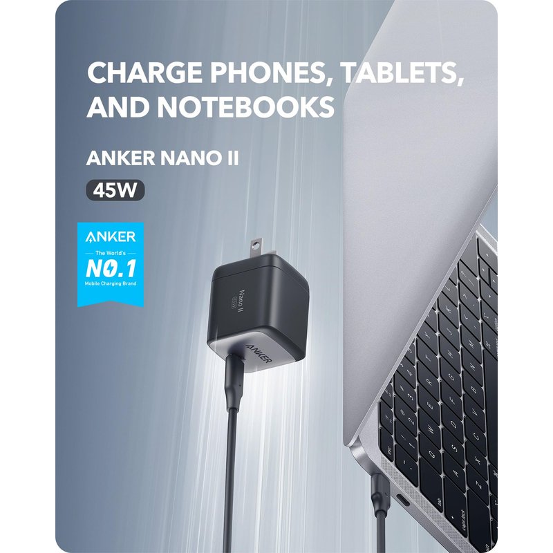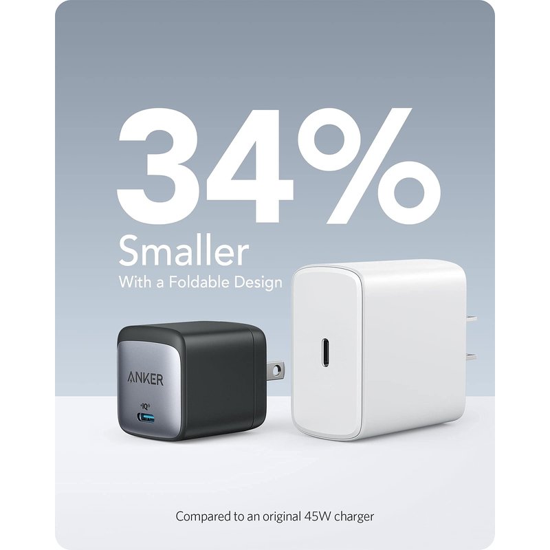 - Downsized Design: At 34% smaller than an original 45W USB-C charger, Anker Nano II takes up less space while giving you just as much power.
