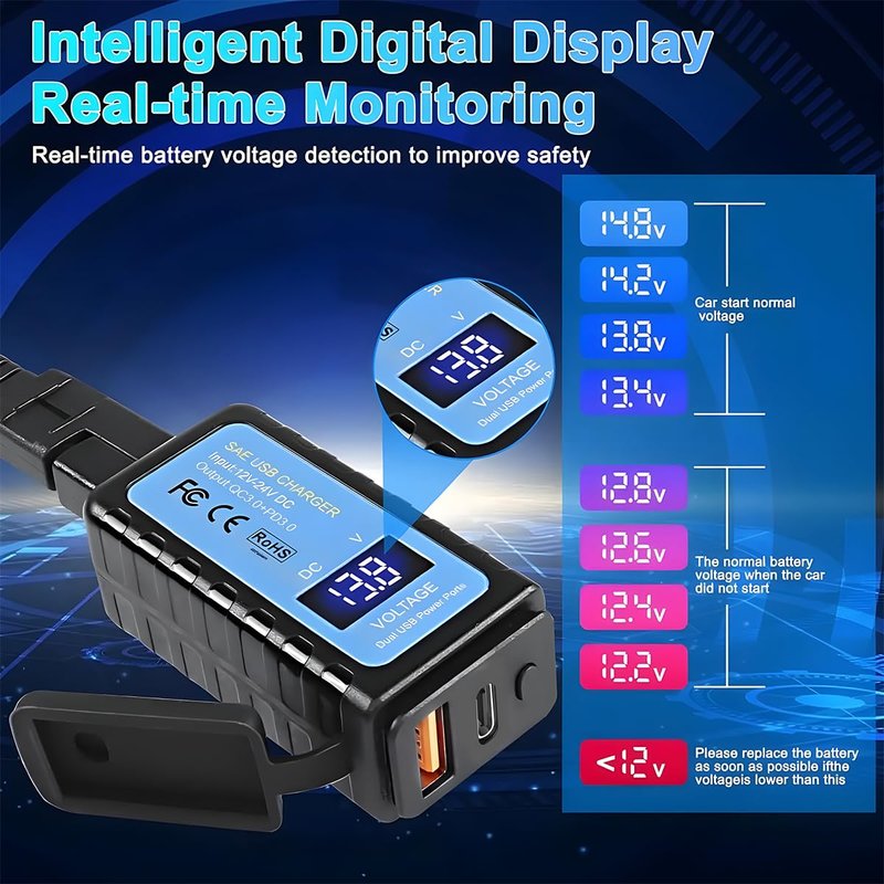 - 【Easy Installation】: Small and portable, with zipper holes for easy installation. Multiple installation options are available, and you can install the SAE to USB adapter on the handle or anywhere else on the motorcycle by fixing the module/zipper/screw to meet your different installation needs. Even beginners in maintenance can quickly install it, please rest assured to purchase. Very suitable for motorcycles, bicycles, ATVs, etc.