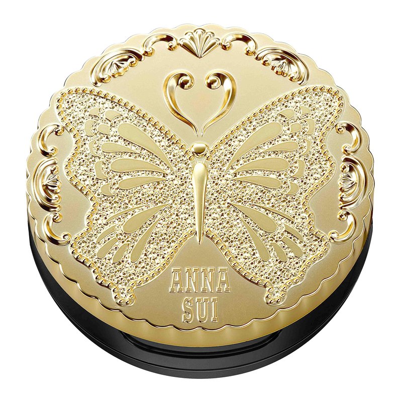 ANNA SUI Loose Face Powder, Mini Compact Only, Refill Sold Separately, With Puff and Lid decorated with Anna Sui's icon Butterfly Motif, 01 Gold