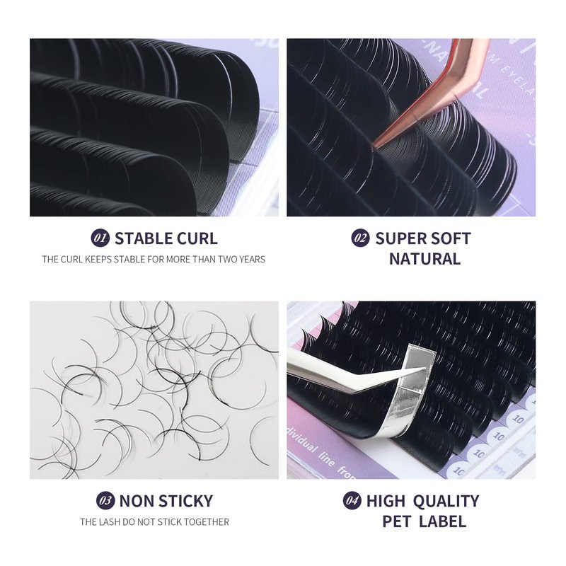 9 major advantages 1: Lashes are Korea imported,Specially researched Synthetic PBT Fiber materials: light, natural and soft. 2: 80°C high temperature resistance. 3: Can be easily removed from the tape. 4: The shape remains unchanged for more than 1 year. 5: The high-quality wallpaper avoids any residue on the eyelash curler, and the super glue can be recycled. 6: Sturdy packaging avoids any damage during transportation. 7: We are a manufacturer, we provide fast departure at the best price. 8: Our eyelashes are authorized by MSDS and SDS, completely handmade, no animal testing. 9: Bulk price and customized labels can be negotiated.