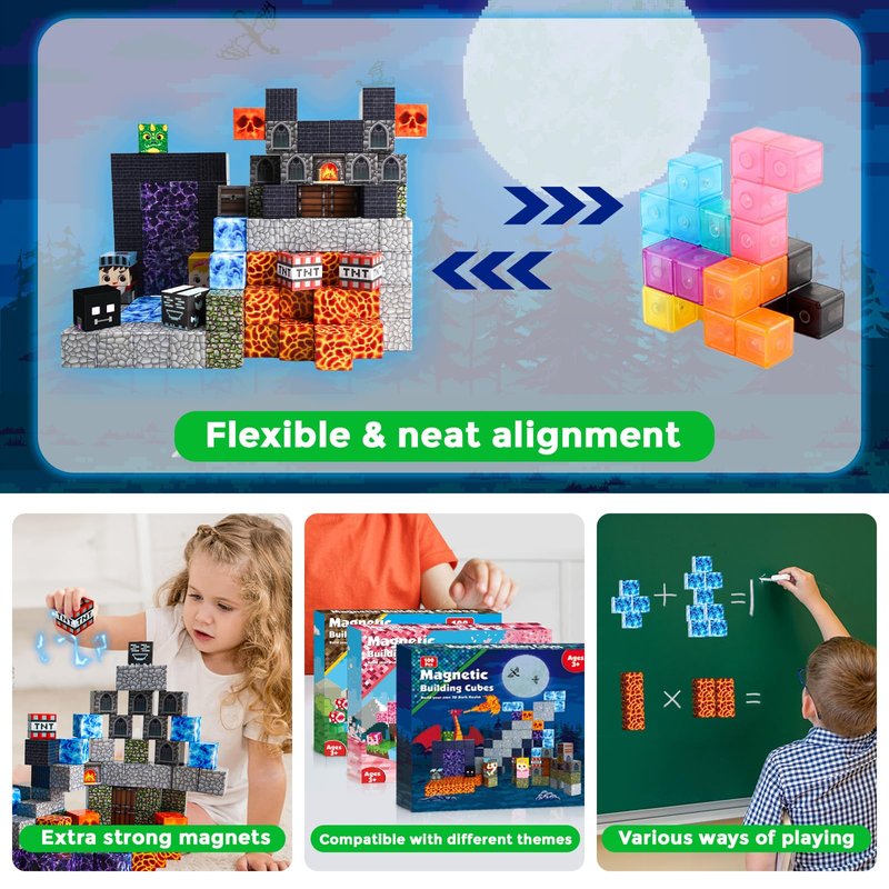 - 【Build Your Own Dark Mechanical Guardian Castle】Get ready to build a castle with this new magnetic cube set simulation "Magnetic Dark Mechanical Guardian Castle" Imagine the amazing stories that could happen in Magnetic Dark Mechanical Guardian Castle and start your castle adventure! Magnetic blocks allow your child to travel to a wonderful castle or a fantasy of possibilities! From simple to challenging builds, experience the fun of role-playing and dress-up toys! Let kids’ imaginations run wild with our magnetic open-ended playset!