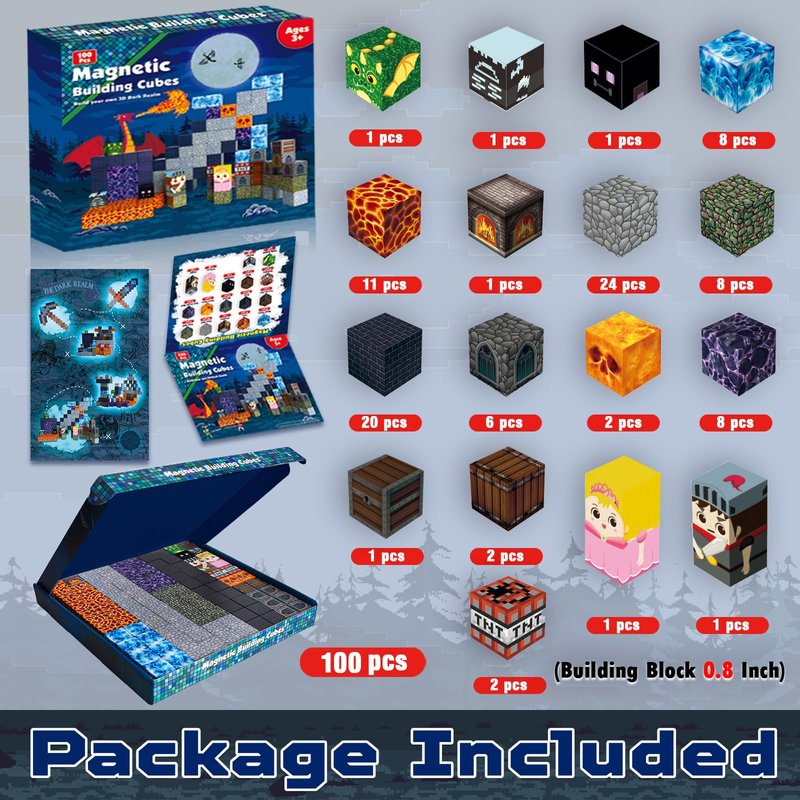 - 【Dark Mechanical Guardian Castle Magnetic Cube Kit】Including 100 magnetic cubes in 16 colors. Idea booklet with the storyline and beautiful patterns, keep them busy in clever ways. AnnexFun magnetic activity cubes are made of high-quality ABS material and crafted with the round edges and the right size. Our magnetic cubes kit with super strong internal magnetic, which is easier for toddlers ages 3+ to stick the cubes together and make builds sturdy. Perfect STEM toys help kids gain a deeper understanding of the structure and learn about magnetic properties!