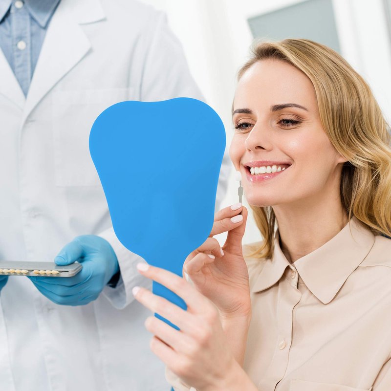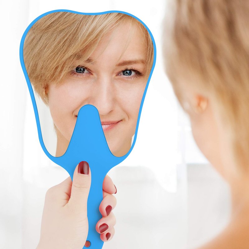 - ♥ Features: High-definition glass hand mirror, flat mirror surface, clear image without distortion, comfortable grip and cute tooth shaped mirror.