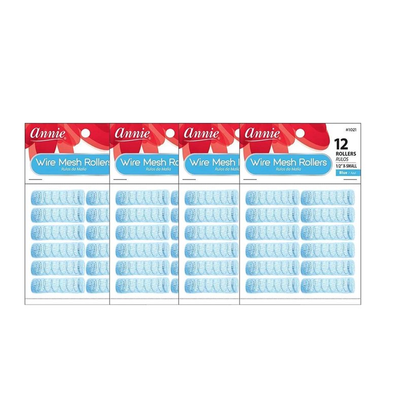 Annie Wire Mesh Rollers #1021, 12 Count Blue X-Small 1/2 Inch (4 Pack)
