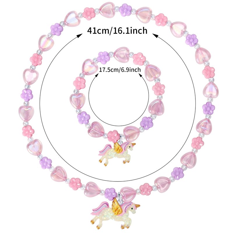 Annilubaby Todder Girls Jewelry Set,Girls Unicorn Necklace Ring Set,Girls Love Necklace Party Favors little Girls Pretend Dress up Play Jewelry,Children Unicorn Ring