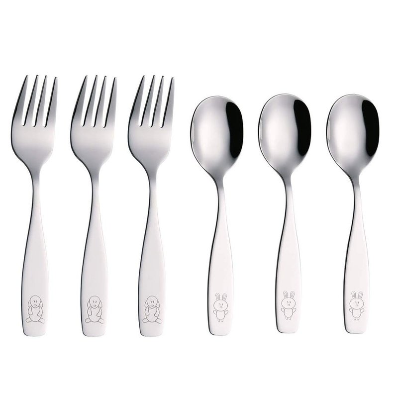 ANNOVA Stainless Steel 6 PCS Children Flatware / Cutlery Set; Including: 3 x Fork (5.7-inch / 14.5 cm), 3 x Dinner Spoon (5.5-inch / 14 cm); Mirror Polished Premium Stainless Steel; Dishwasher Safe and extremely durable; Comfortable handles are easy for children to hold, suggest for 24 months +