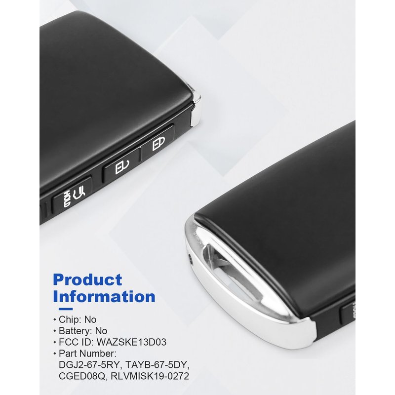 - Replacement FCC ID: WAZSKE13D03; Part Number: DGJ2-67-5RY, TAYB-67-5DY, CGED08Q, RLVMISK19-0272