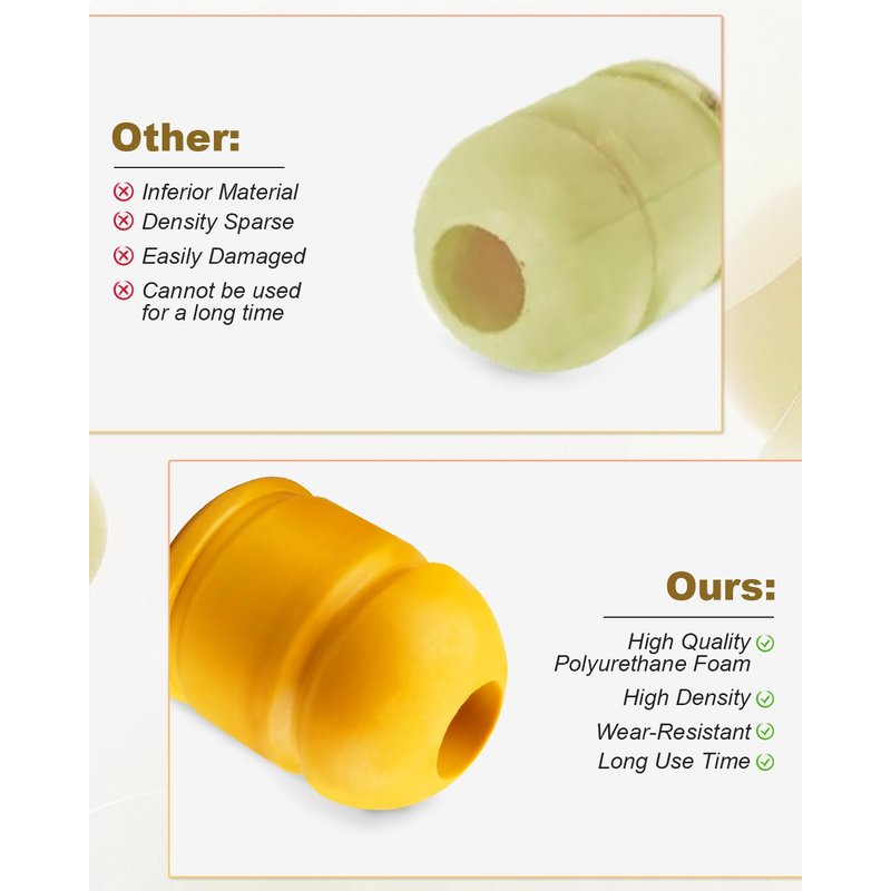 - High-Density Polyurethane Foam: Rear suspension bumper is heavier and more durable than other Bump Stops