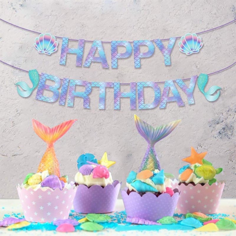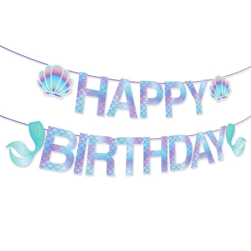 - Mermaid Birthday Banner Decorations, Add More Happy and Extra Atmosphere to Comrades, Playmates, Gamers. Have Fun on Mermaid Birthday Banner Game, Give A Surprise to Partner.
