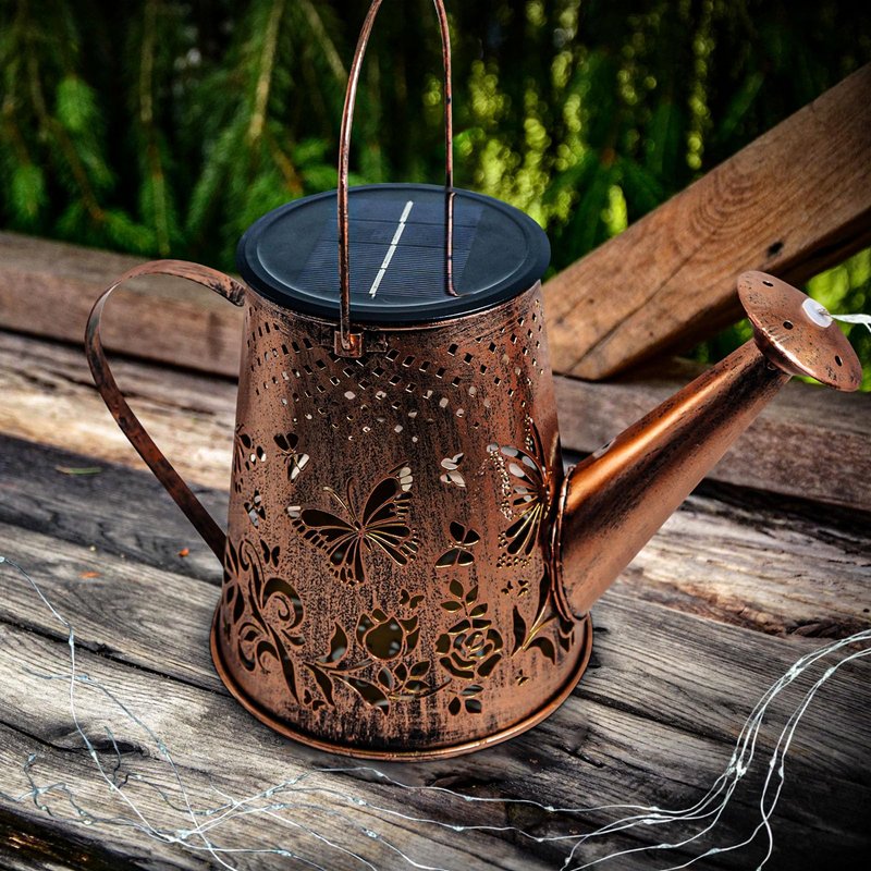 Anordsem Solar Garden Light for Outdoor Decor, Watering Can Butterfly Lantern with 6 LED String Cascading Lights, Backyard Yard Fence Lawn Decorations, Auto ON/Off & Waterproof
