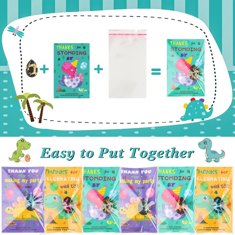 - EASY TO ASSEMBLE - Just put the dinosaur card and dinosaur egg in a plastic cello, and a cute dinosaur party favor set is finished! Here(30 pack) were enough for a dinsoaur birthday party and plenty for the whole class for kids Bday at school.