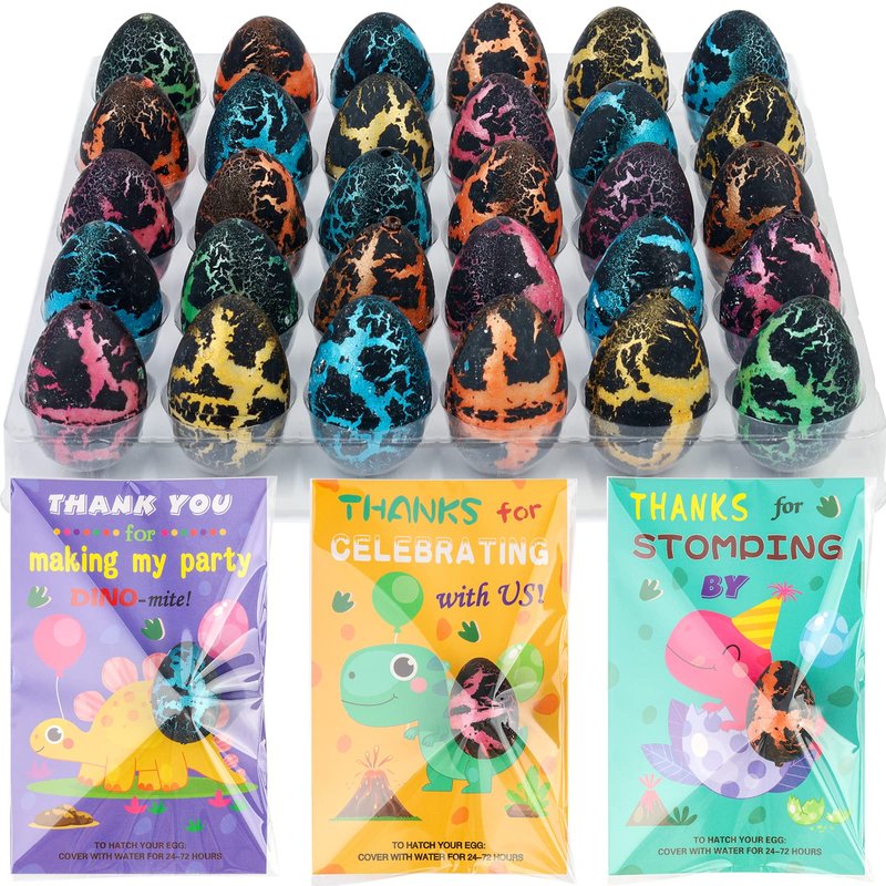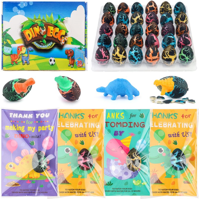 ANPHILE Dinosaur Party Favors - Dinosaur Birthday Party Supplies - 30 Pack Hatching Dinosaur Eggs with Cards Bulk - Party Favors for Kids 4-8, 8-12