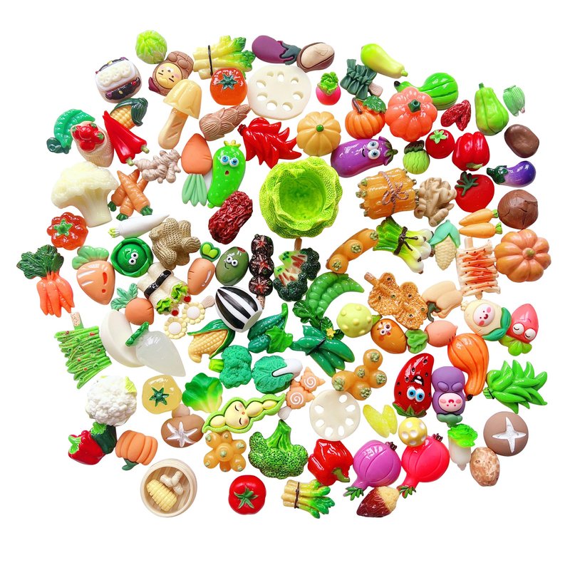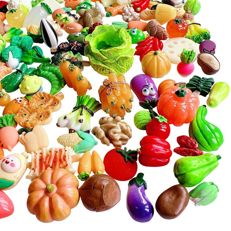 Anrher 100pcs Miniature Mixed Vegetable Decoration Resin Sets for Childrens Dollhouse Pretend Kitchen Play Cooking Game DIY Party