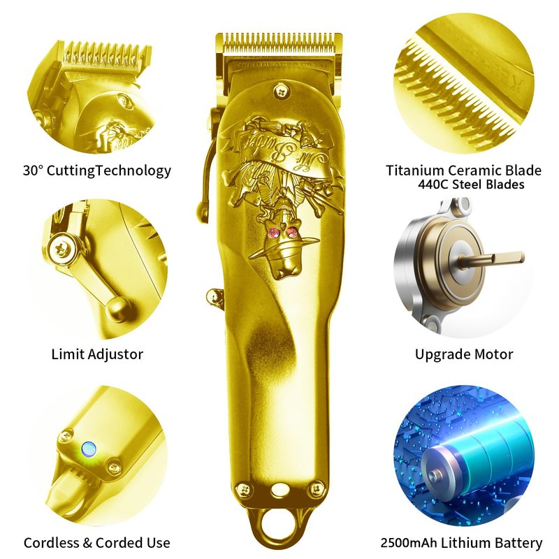 Anrom Hair Clippers for Men Professional - Cordless & Corded Barber Clipper for Home Hair Cutting Grooming Set, Rechargeable Mens Hair Clipper & Trimmer (Gold)