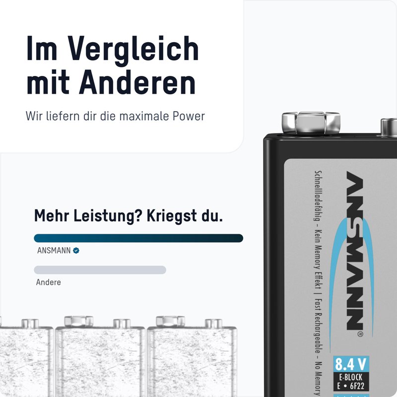 - ANSMANN offers a 2 year Manufacturer Warranty, while conventional rechargeable batteries have no warranty at all