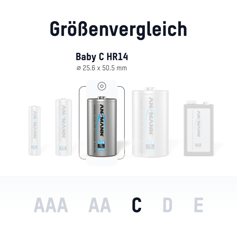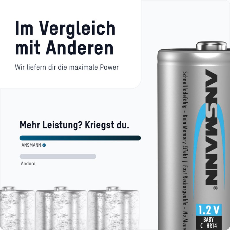 ANSMANN Rechargeable C Batteries 4500mAh maxE ready2use NiMH Professional C Battery pre-charged Power Accu for flashlight etc. (4-Pack)