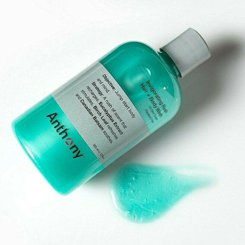 Anthony Mens Body Wash and Shampoo: Invigorating Rush 2-In-1 Liquid Gel Soap & Hair Shampoo – Pine Wood Scent Contains Eucalyptus Extract, Canadian Balsam & Birch Leaf 12 Fl Oz